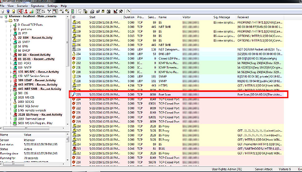 "Honeypot" is a term used to describe a computer or a network that is set to attract hackers. It is essentially a trap set to analyze the attacks of hackers on a system and to detect vulnerabilities. Of course, they are not always used to analyze and detect weaknesses in systems. The most common purpose of using it is by secret services (ie. F.B.I.) ;-) and usually "scam" sites offering illegal services or goods. Most are in the deep / dark web and several have been made around some myths (ie. red rooms) Below we will see how to run a honeypot on windows. First we need to download the KFSensor which works like a honeypot. Once installed, it starts running and monitoring. It's already configured to monitor all TCP and UDP ports. In the figure below we see that it works as an IDS (intrusion detection system) and has detected a port scan on our system.